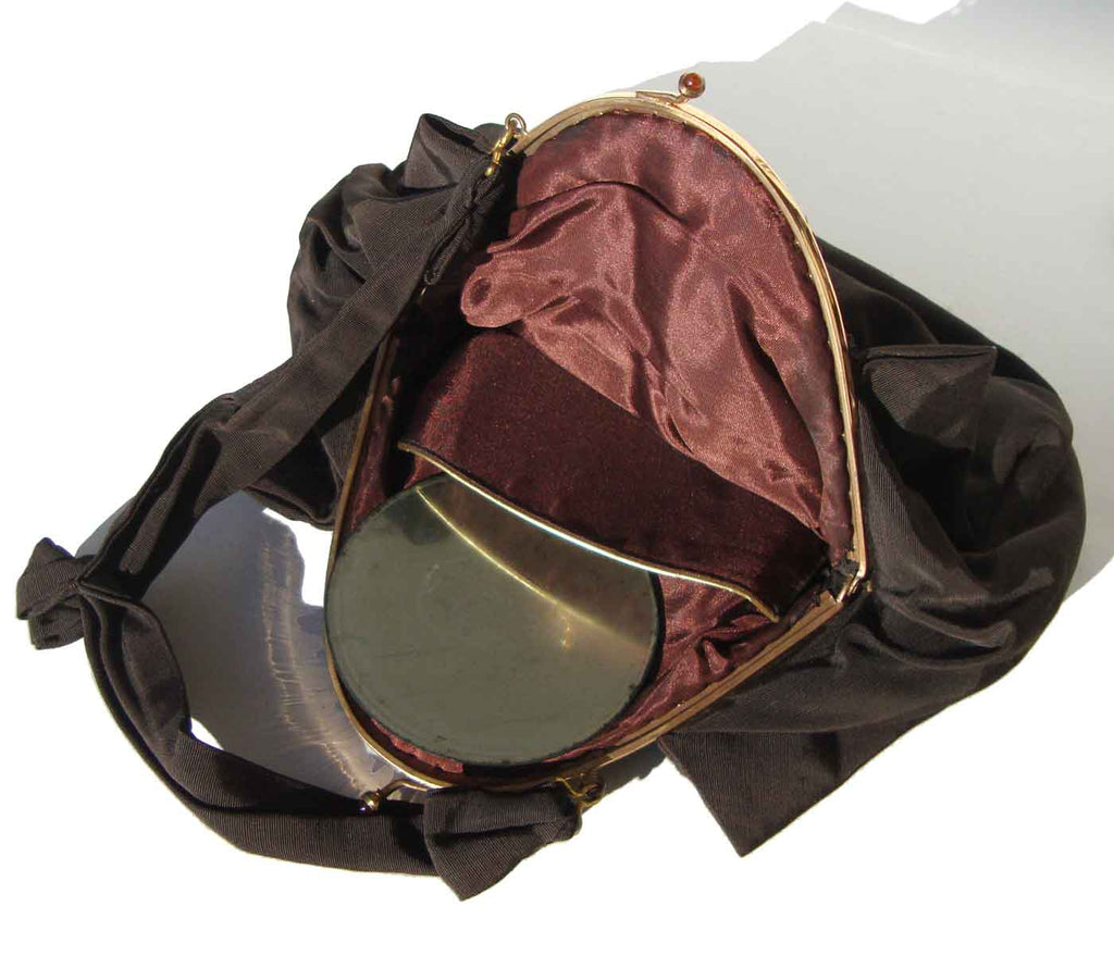 Vintage 40s Handbag Brown Pleated Faille Art Deco Bag Purse