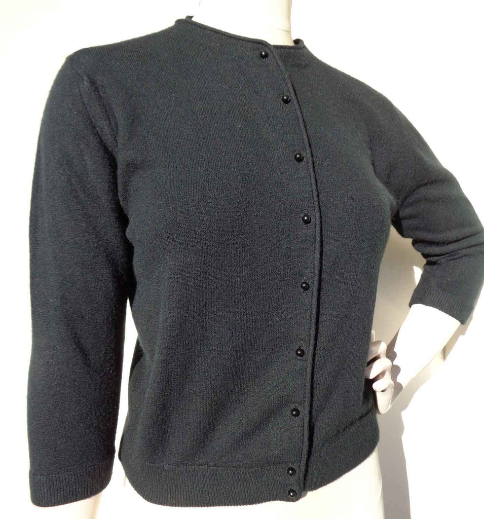 Vintage 60s Cardigan Black Wool Crop Sweater M