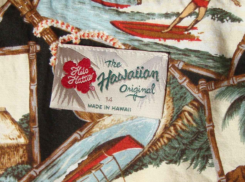 It also has a single embroidered label for “Hilo Hattie”, “The Hawaiian Original”, along with a size of “14”, and “Made in Hawaii”.