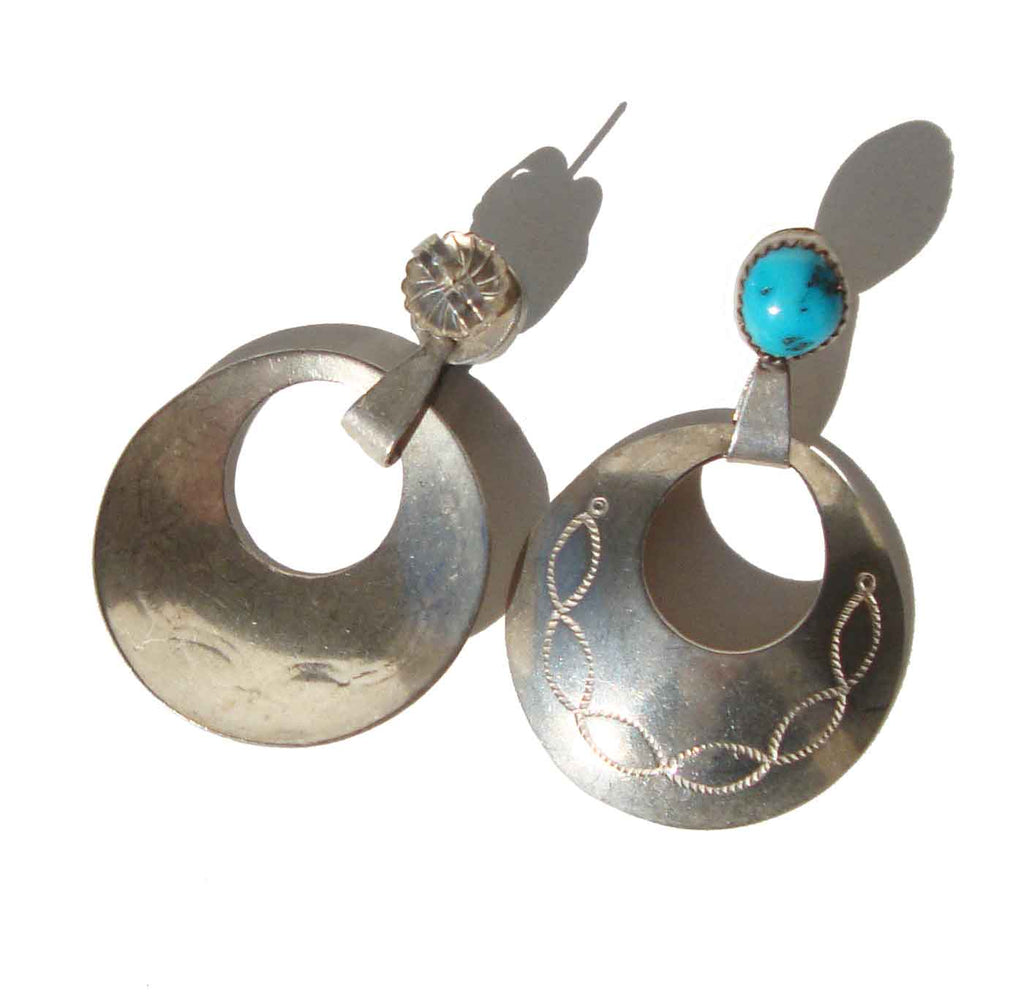 Vintage 70s Navajo Sterling & Turquoise Hoop Earrings