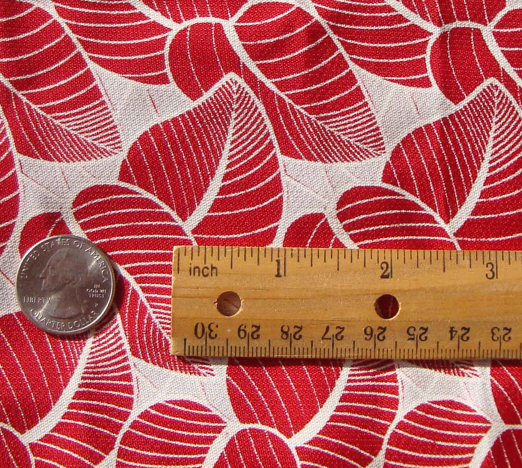 Vintage 40s Rayon Damask Fabric Red Leaf 3.5 Yds