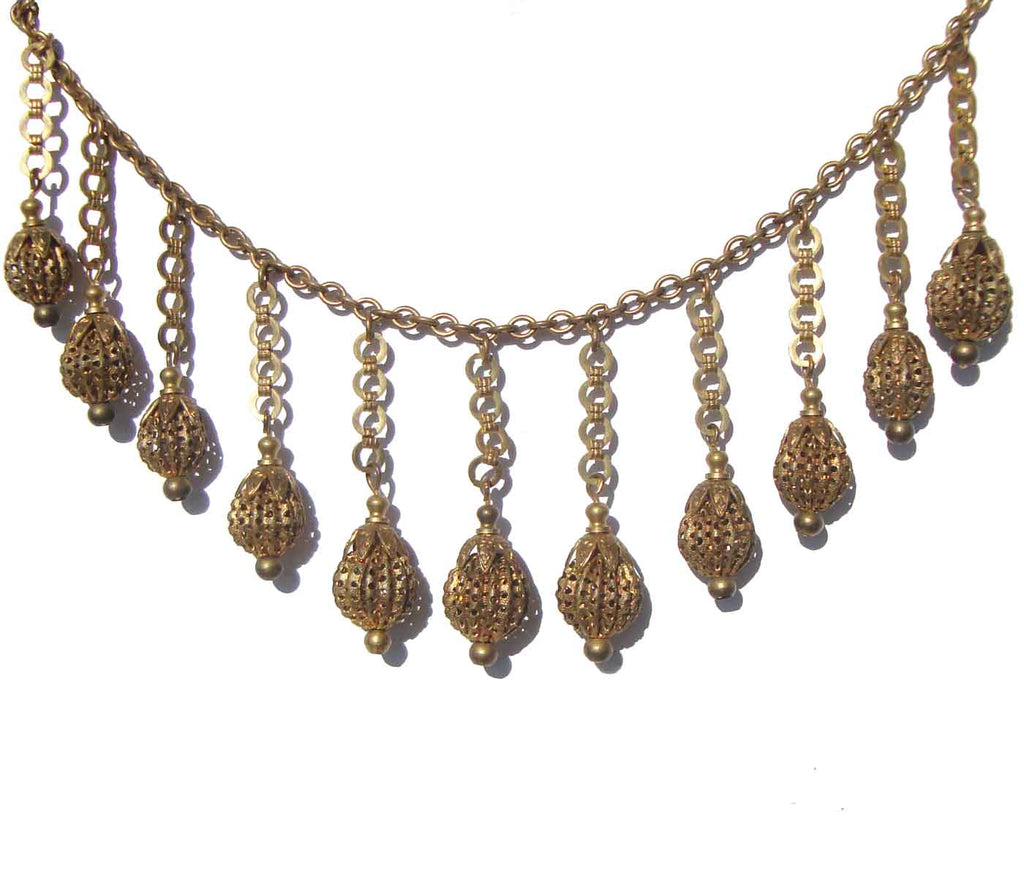 Vintage 30s Necklace Brass Fringe Drops Egyptian Revival Bohemian Art Deco
