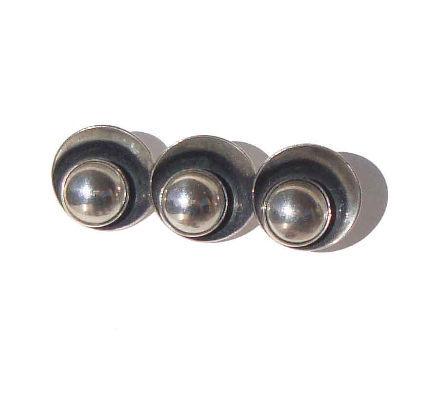 Three concentric circles containing three silver spheres is the feature of this vintage modernist sterling silver brooch by Niels Erik From of Denmark, circa 1960s.