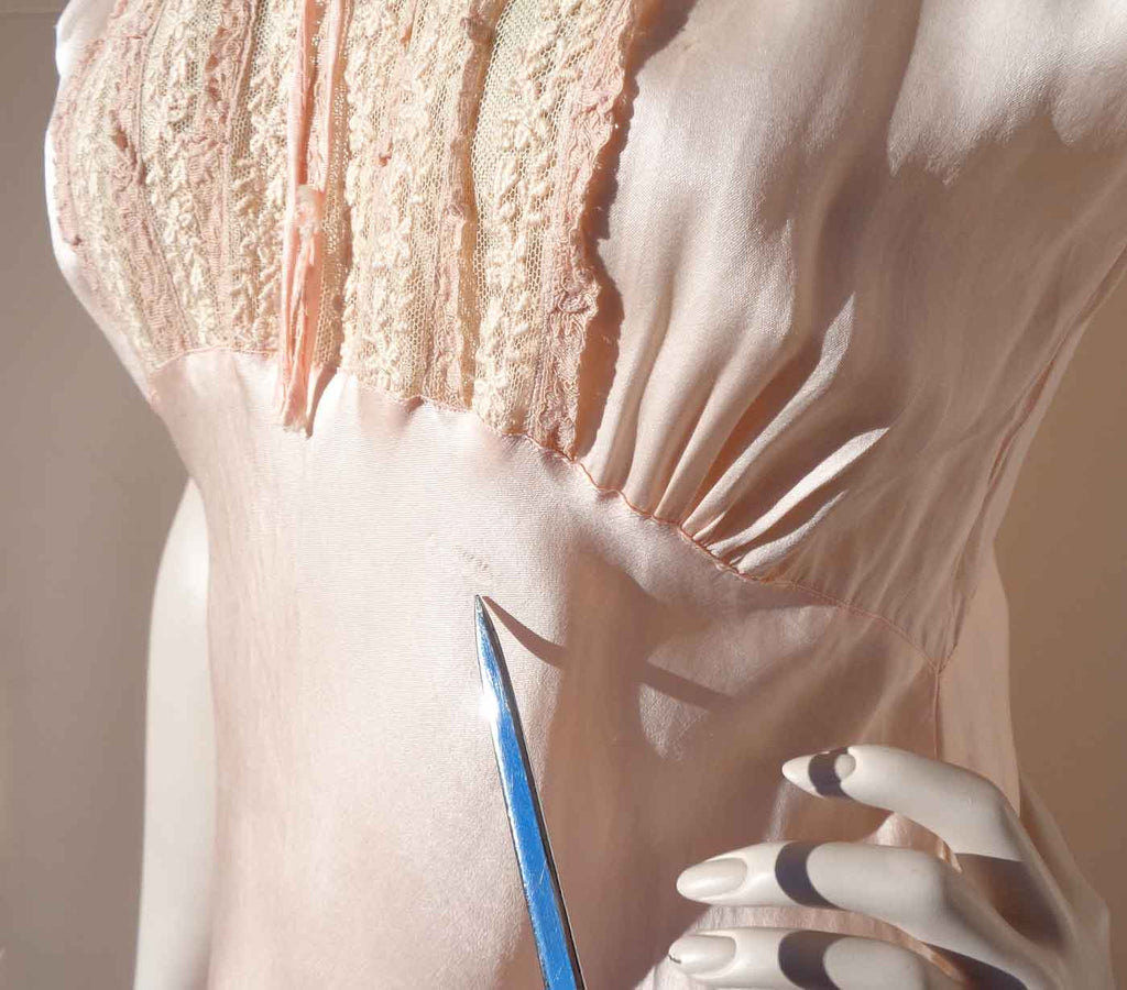 Vintage 40s Pink Nightgown Bias Cut Liquid Satin & Lace Rayon